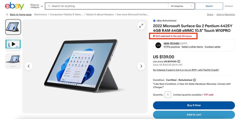 2. eBay : Idéal pour les produits neufs et d'occasion, et idéal pour dénicher des bonnes affaires ou des articles rares.
