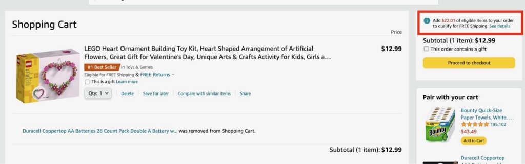 Le fait de proposer une livraison gratuite ou express pour les commandes dépassant un certain montant incite les clients à augmenter la taille de leur panier pour pouvoir en bénéficier. De nombreux sites de prêt-à-porter, d'épicerie et de livraison de produits alimentaires en ligne utilisent cette stratégie en offrant la livraison gratuite à partir d'un certain montant de commande. Cela incite souvent les consommateurs à ajouter des articles à leur panier et à dépenser ainsi plus pour bénéficier de la gratuité des frais de port.