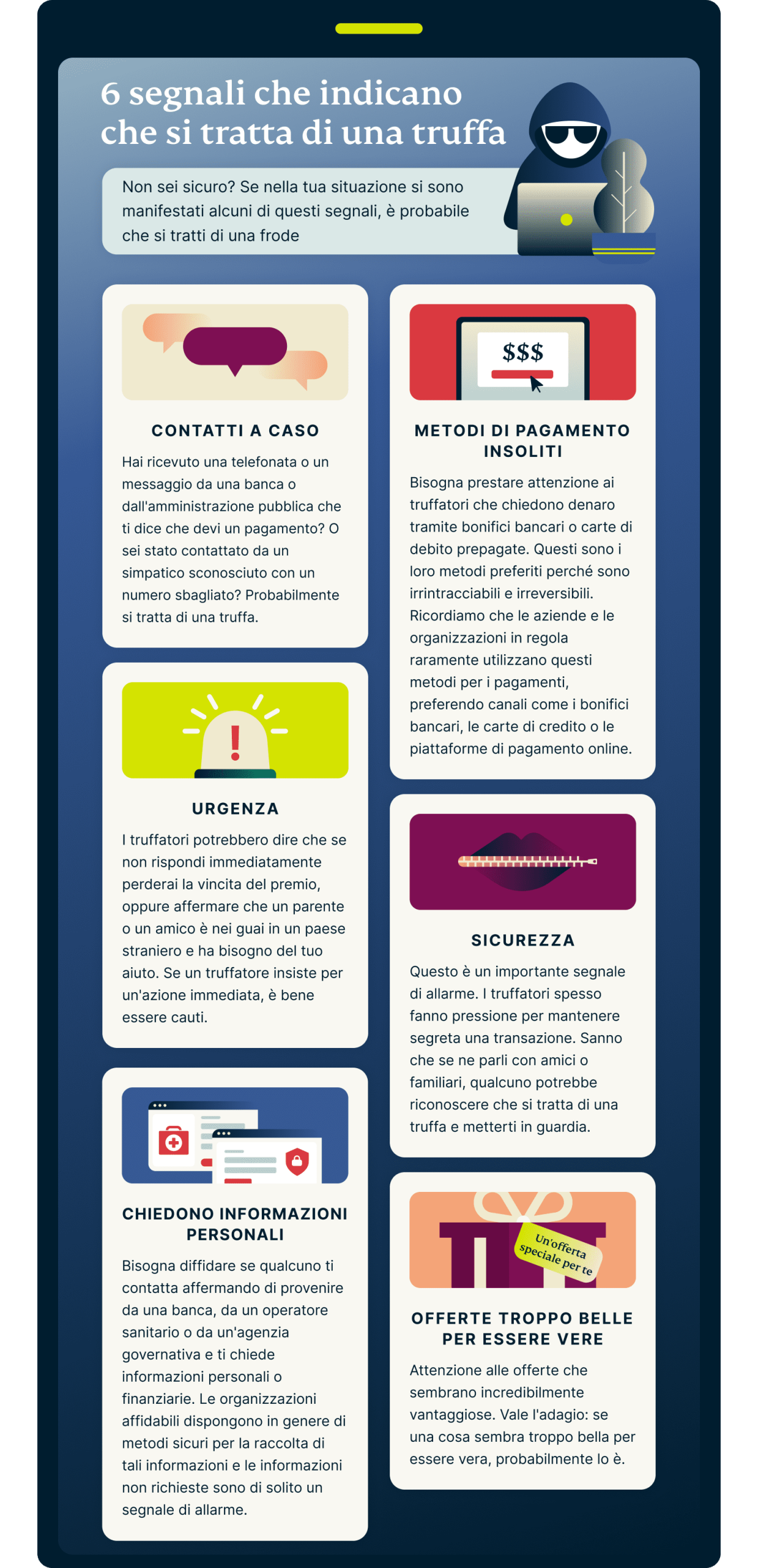 • Quali sono i segnali di allarme di una truffa?