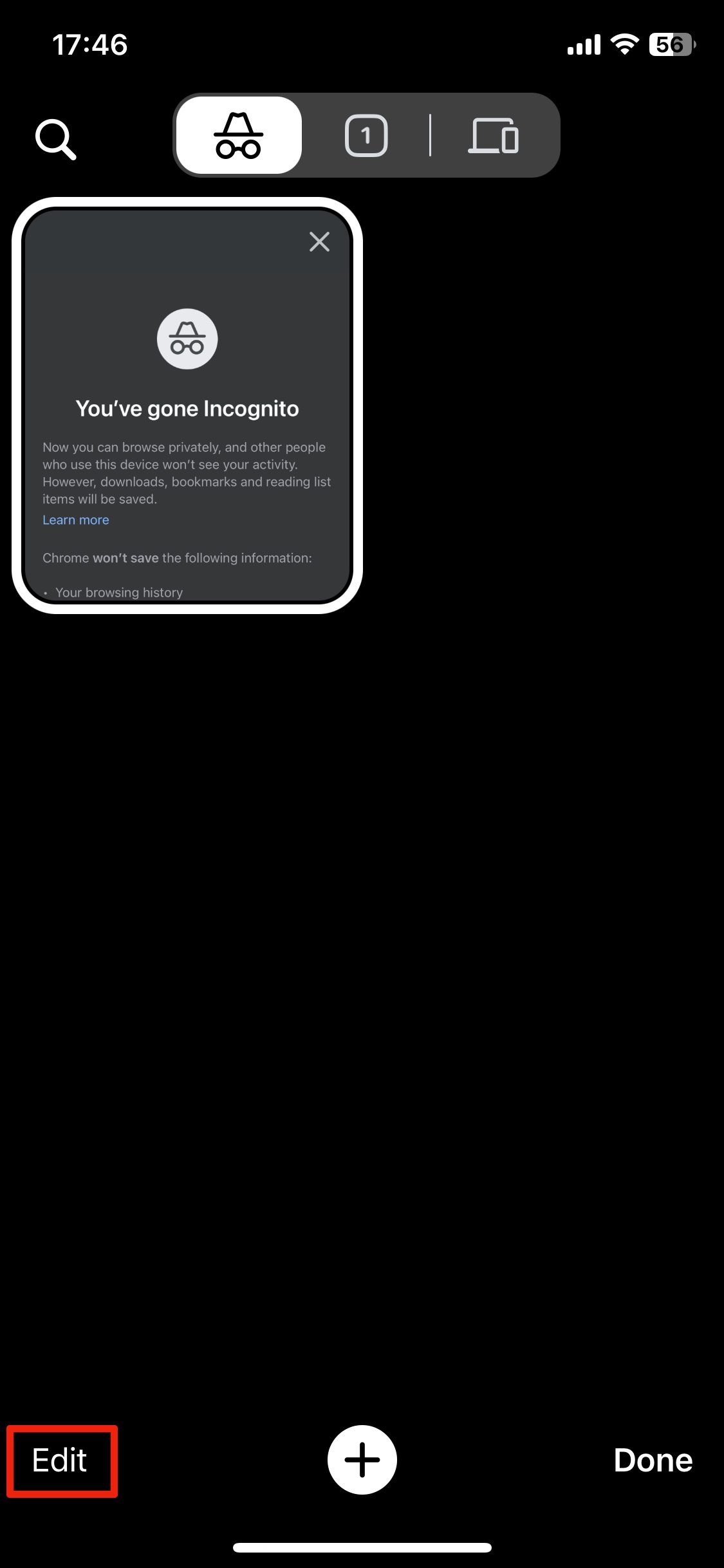 6. いずれかのタブをタップするか、下にある+サインを押して新しいタブを作成します