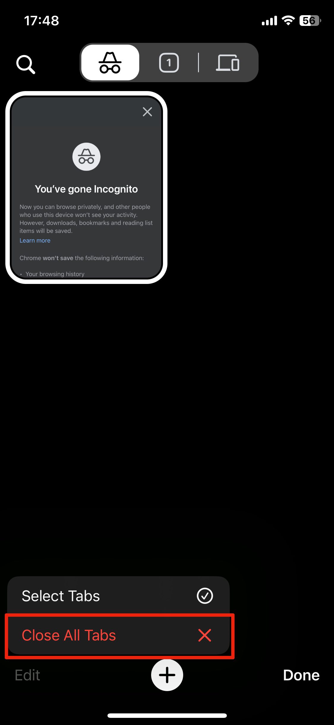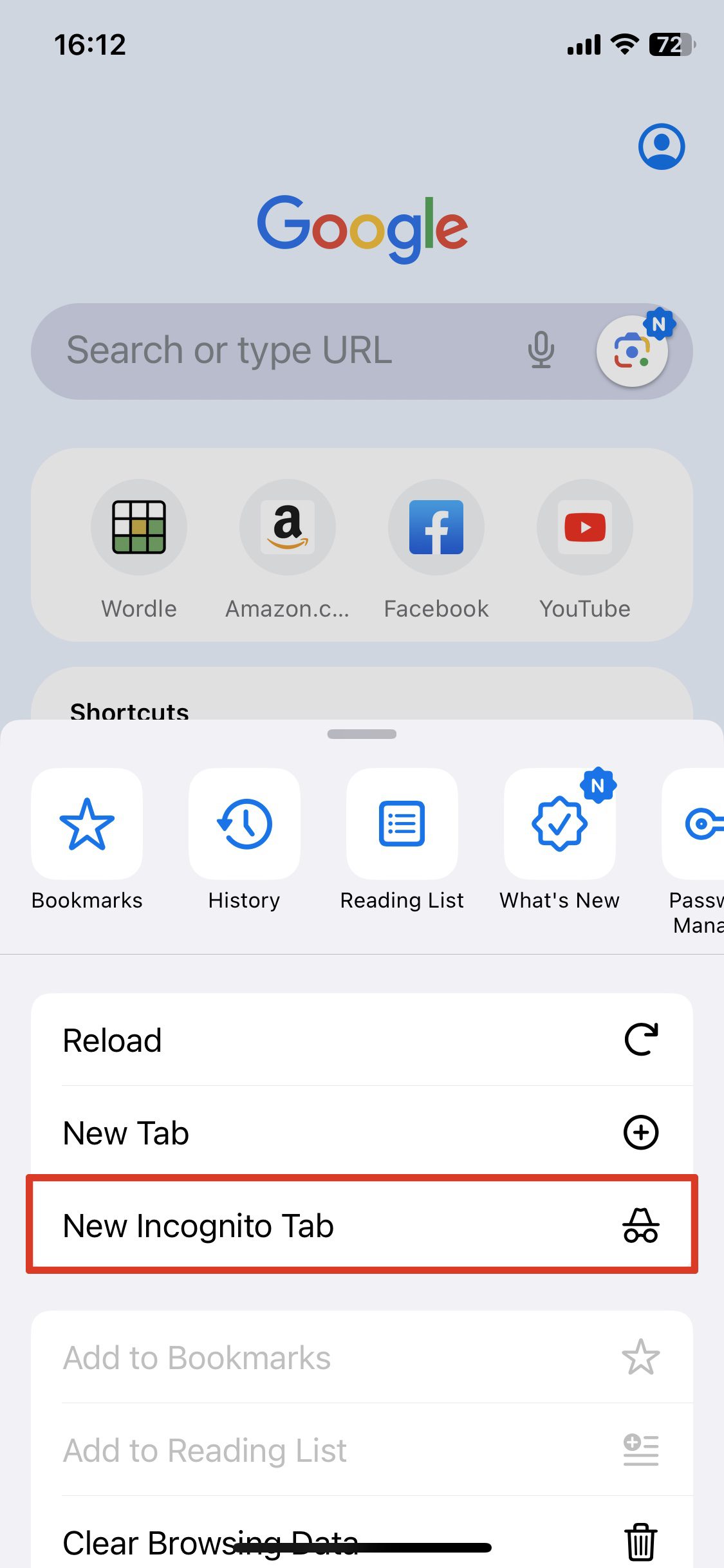 3. 新しいシークレットタブをタップします