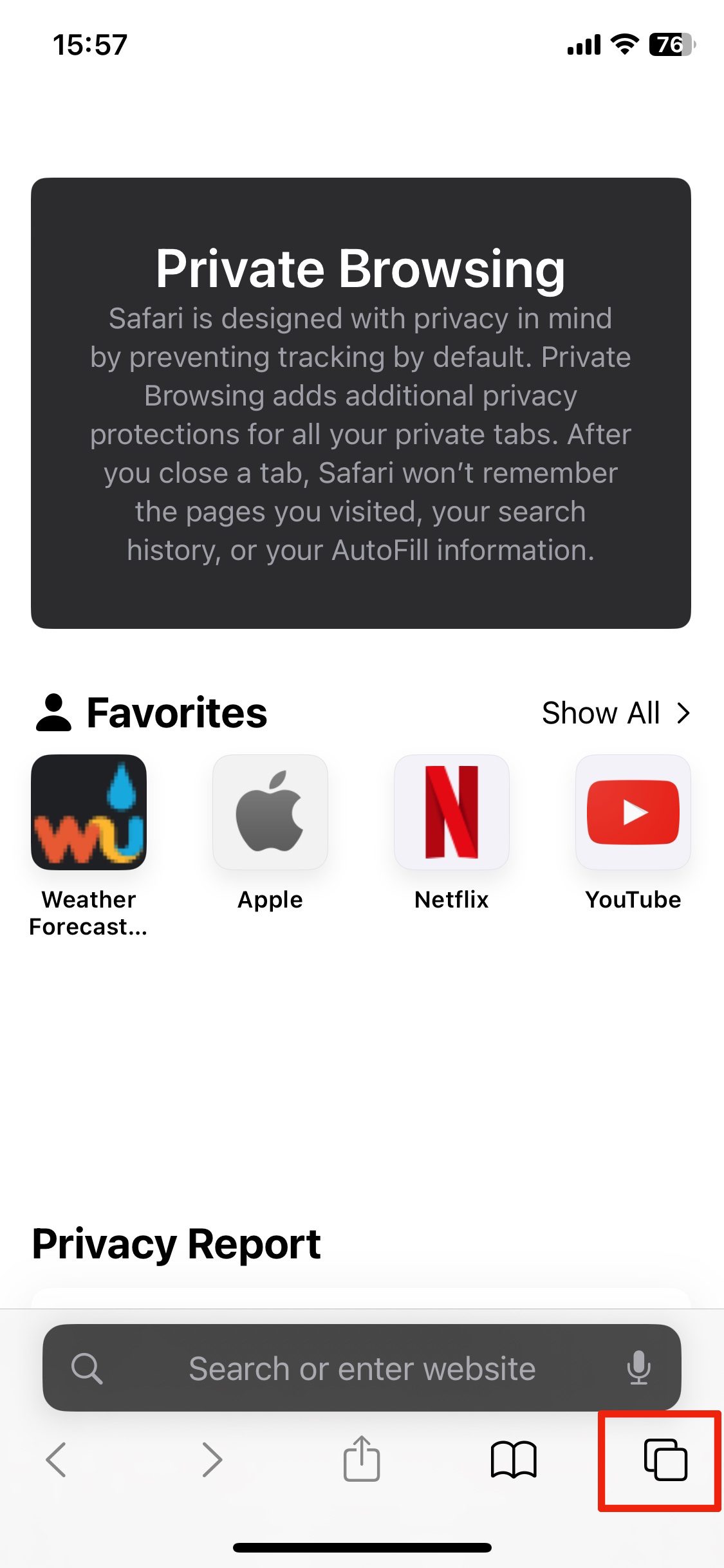 この方法は、プライベートブラウズモードを有効にするより速い方法で、このモードにすでに慣れているなら便利です。Safariを開いたら、以下の素早い手順に従うだけです。