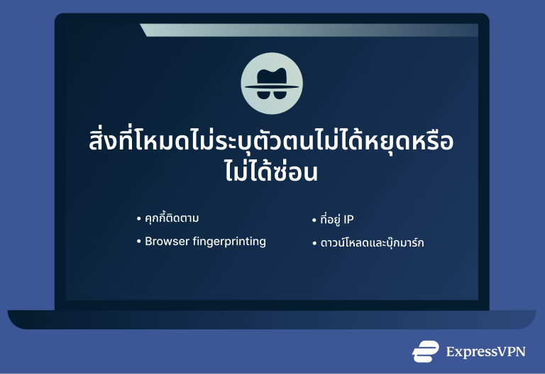 โหมดไม่ระบุตัวตนนั้นถูกออกแบบมาเพื่อรักษาความเป็นส่วนตัวให้การเรียกดูเนื้อหาของคุณบนอุปกรณ์ที่คุณใช้งาน ไม่ใช่เพื่อซ่อนตัวตนออนไลน์ของคุณ