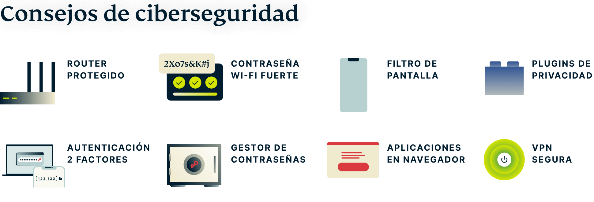Por eso, los expertos en ciberseguridad aconsejan utilizar siempre protección privada cuando estemos trabajando en línea y seguir estas recomendaciones, ya estemos trabajando en casa o en un espacio compartido como un aeropuerto o una cafetería: