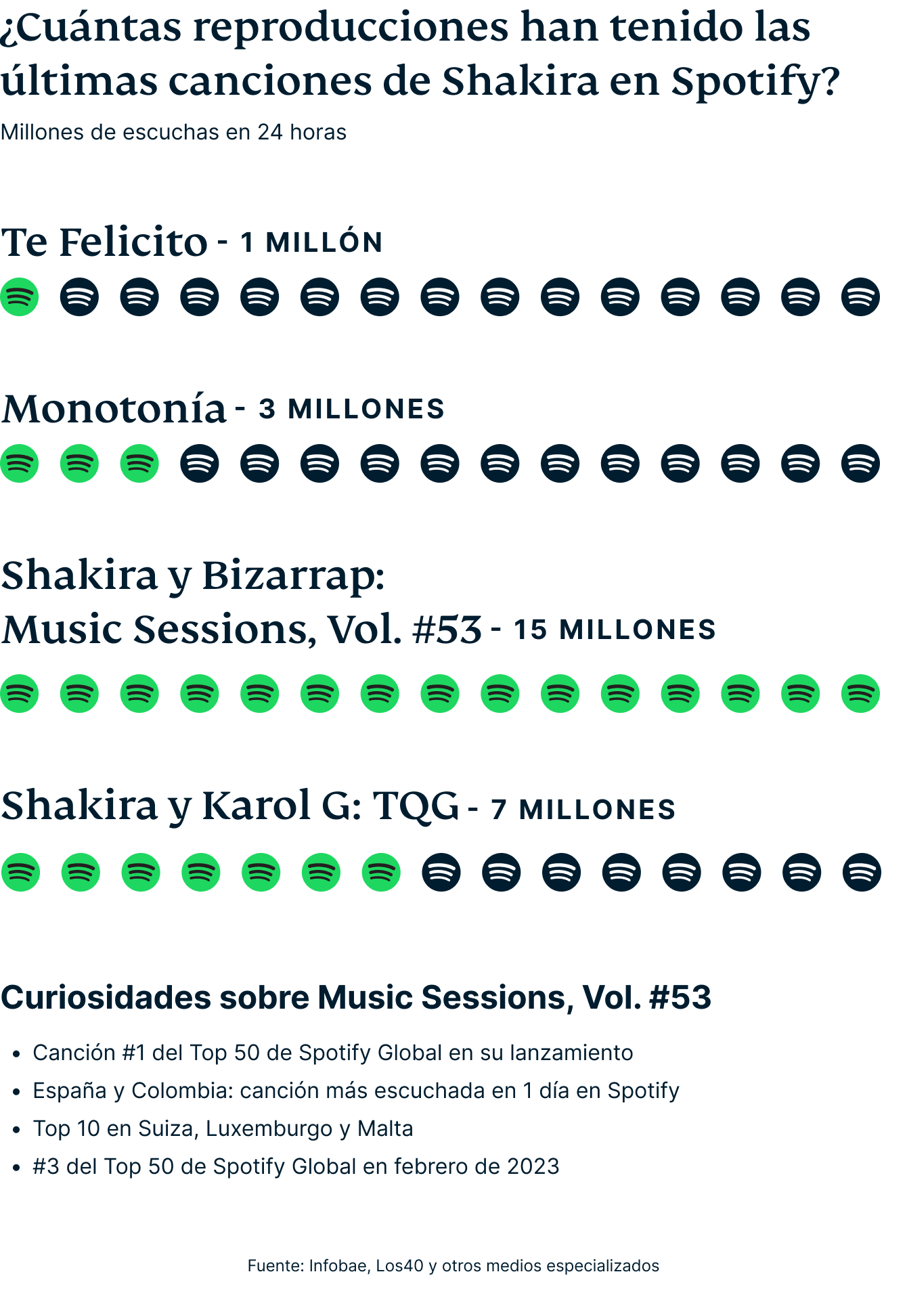 Además de esta nueva canción, el éxito de Shakira con el productor y cantante Bizarrap, Music Sessions, Vol. #53 batió su propio récord al lograr 15 millones de reproducciones en Spotify Global en solo 24 horas.