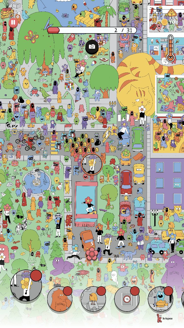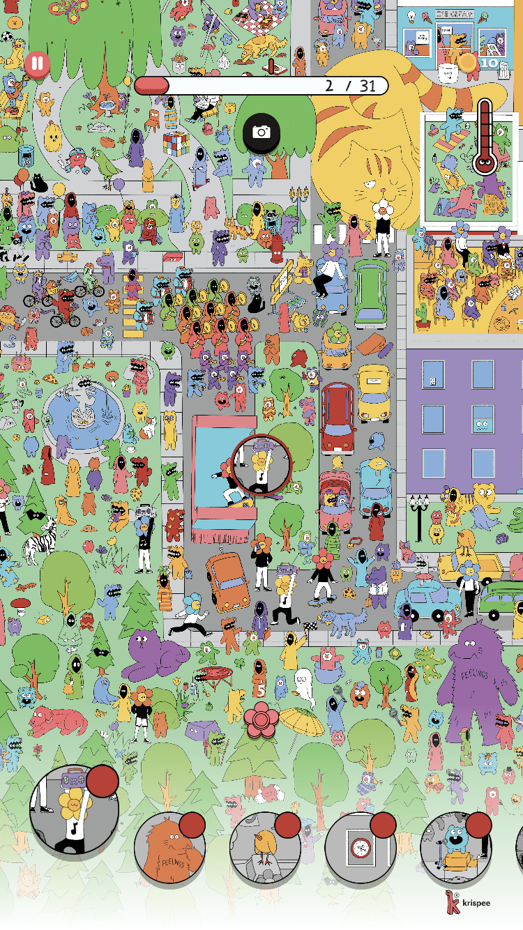 「大人気ウェブ漫画の世界観に基づいた、心に優しい探し物ゲーム。ちょっと変わっているけど不思議と癒される、いろいろなキャラクターやアイテムを見つけ出そう」