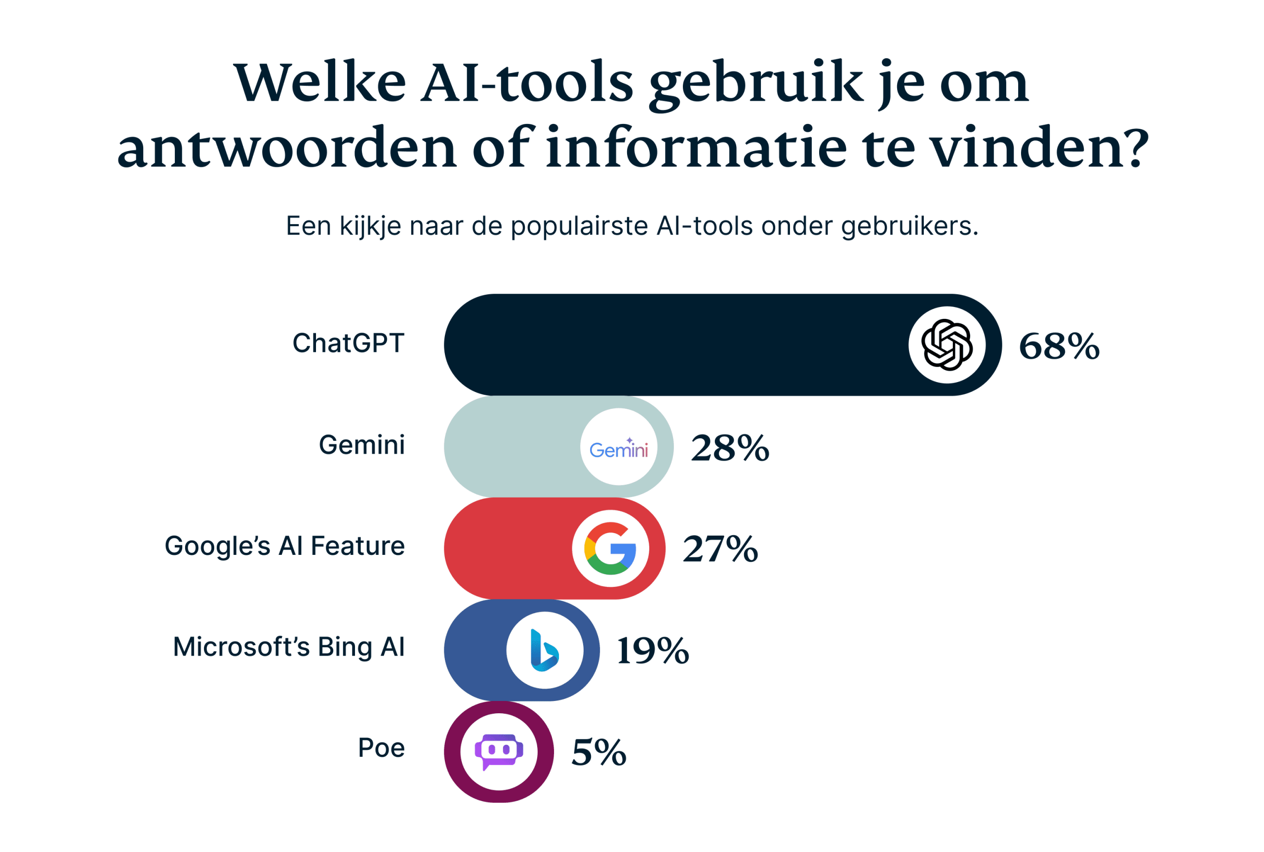 Maar de aantrekkingskracht gaat verder dan alleen snelheid en gemak. Uit onze enquête blijkt dat 42% van de gebruikers AI-tools waardeert vanwege de snelle antwoorden op complexe of open vragen. In tegenstelling tot traditionele zoekmachines kunnen AI-platformen ingewikkelde vragen ontleden en omzetten in heldere, uitvoerbare inzichten.