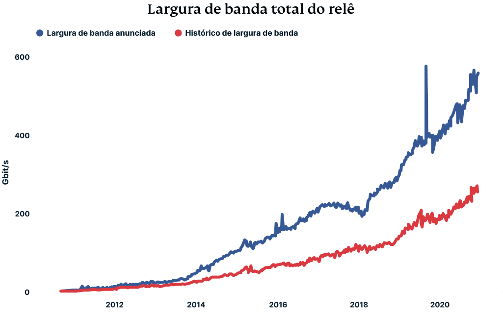 Gráfico mostrando o total de usuarios da rede Tor de 2010 a 2020Na prática, os endereços .onion desempenham outra função importante. Eles são uma ferramenta fácil para tornar seus dispositivos acessíveis dentro de redes fechadas com firewalls rigorosos, tais como dormitórios de estudantes ou escritórios. Se você quer rodar um servidor pessoal, por exemplo, em tal ambiente, usar o tor e um endereço do onion é uma maneira conveniente de tornar este dispositivo acessível do exterior.