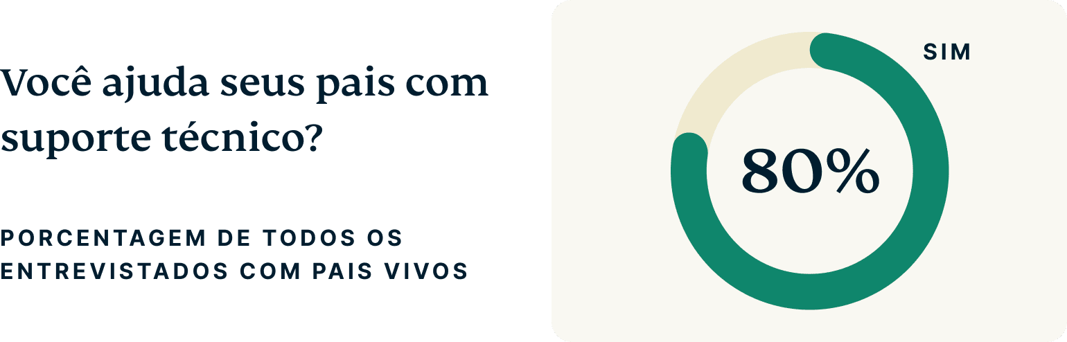 Quatro em cada cinco adultos ajudam seus pais com suporte técnico